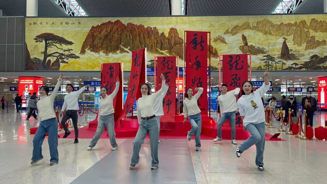 2月2日,由省歌舞剧院(演出公司)与合肥新桥机场联袂举行的“歌舞快闪送祝福”系列新春文艺演出活动在机场航站楼出发大厅喜乐演绎。精彩纷呈的歌舞快闪律和着动感的节奏,激越欢快,让整个候机楼瞬间生动欢悦起来,渲染出浓浓的年味,引得过往旅客驻足观看。大家纷纷拿出手机拍照,定格美好瞬间。