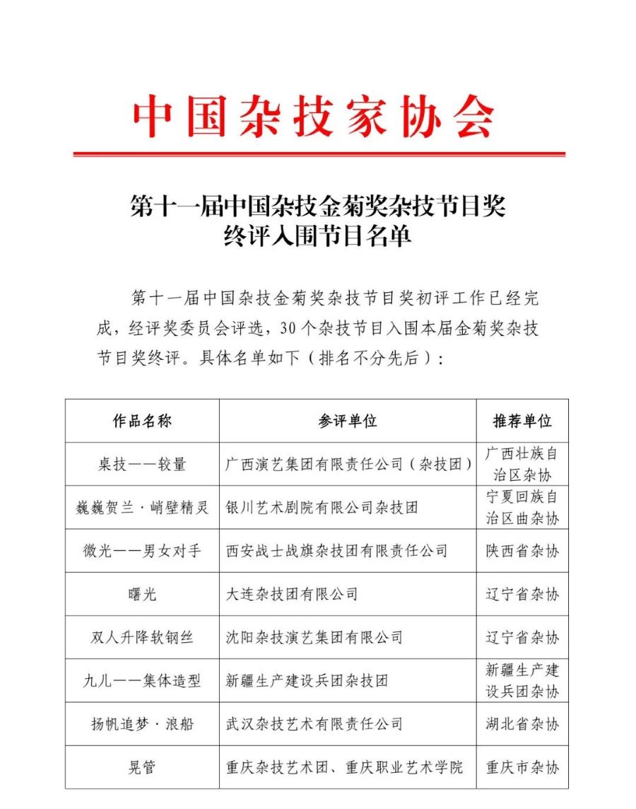 中国杂技金菊奖,是由中国文联参与主办的全国性文艺专业奖项,是中国杂技界的最高奖项。第十一届中国杂技金菊奖将于2022年11月9-10日在河南濮阳市举行终评演出。