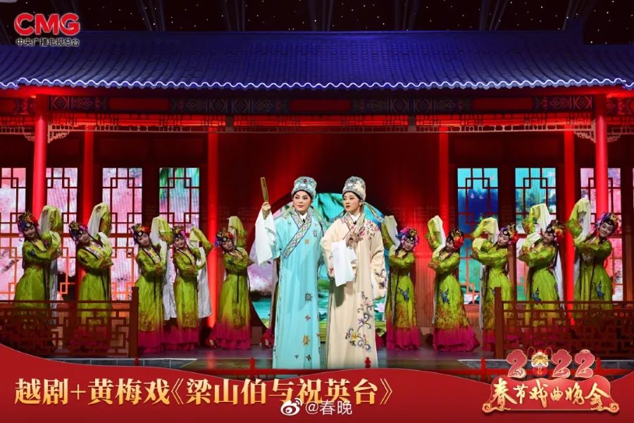 安徽省黄梅戏剧院梅花奖获得者何云精彩亮相央视“2022春节戏曲晚会” 与越剧名家对唱黄越版“十八相送”
