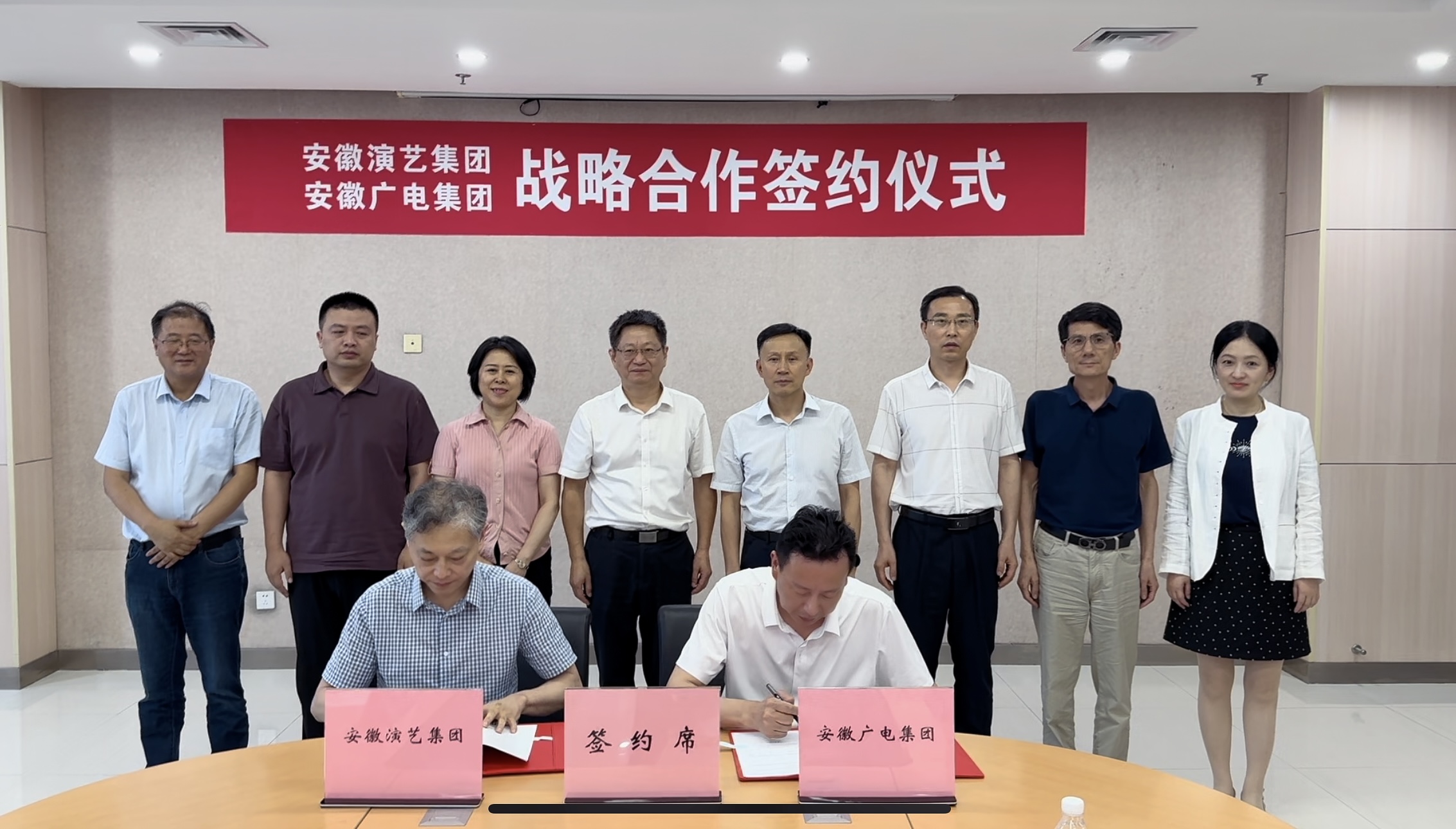 7月5日,安徽演艺集团与安徽广电集团战略合作协议签约仪式在广电集团举行。安徽演艺集团党委书记、董事长张健,安徽广电集团党委书记、董事长周玉出席。安徽演艺集团党委副书记、董事、工会主席李涛与安徽广电集团党委副书记、董事王刘生代表双方就微短剧创作、电影与戏剧创新转化等十项合作内容签订战略合作协议。