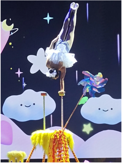 节目集视觉艺术、童话与技巧于一体,讲述了一个女孩天马行空的多彩幻想,以色彩斑斓的道具形态、舞美构建了一个绮丽幻境。其中,“风车”隐喻了女孩奇妙幻想的启发点。随风旋转的风车奇迹般带动了女孩的身体自由而轻盈的舞动,杂技超越常人的身体极限和精湛技艺顺势而为;如单手倒立、左右手单臂推起、单手顶柔术造型等技术动作一一呈现其中,展现出惊人的平衡感和身体协调性。通过女孩的绮丽幻想,将倒立艺术巧妙融入流畅的表演中,为观众构建了一场梦幻而唯美的表演。以其独特的魅力,引领观众走进一个充满惊喜和童话的艺术世界。(来源:安徽省文联微信公号)