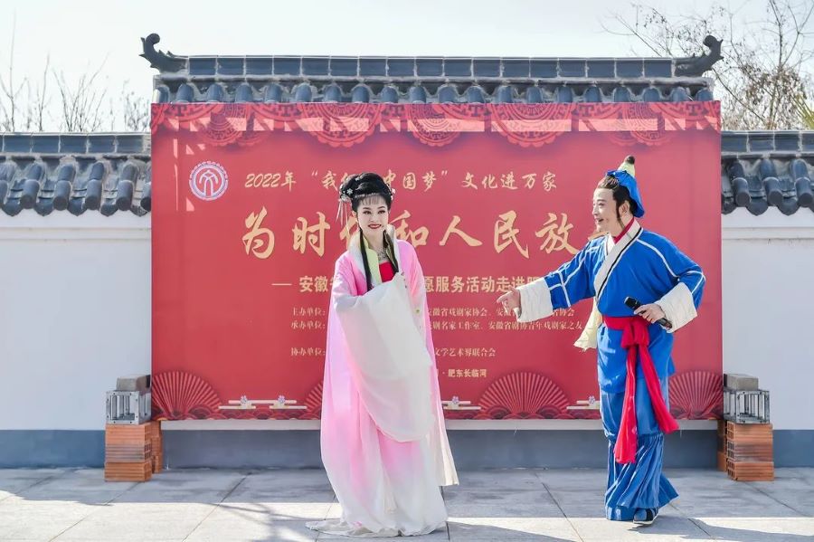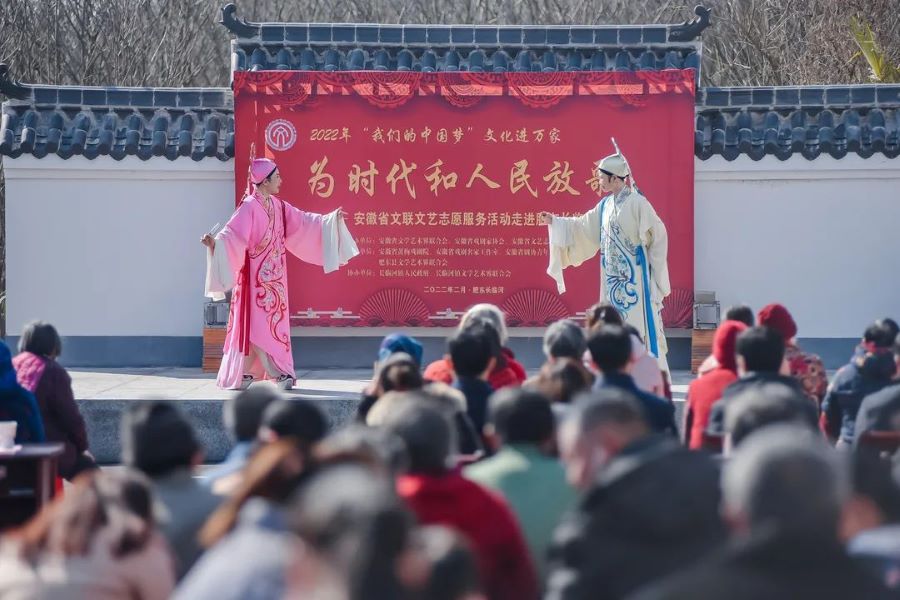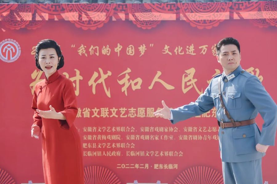 2月26日上午,肥东县长临河镇虹光社区广场上,响起了铿锵有力的锣鼓声和悠扬动听的戏曲声,伴随的是一阵阵热烈掌声。由省文联、省剧协、省文艺志愿者协会主办,安徽省黄梅戏剧院演出的“为时代和人民放歌”——省文联文艺志愿服务活动正在这里举行。