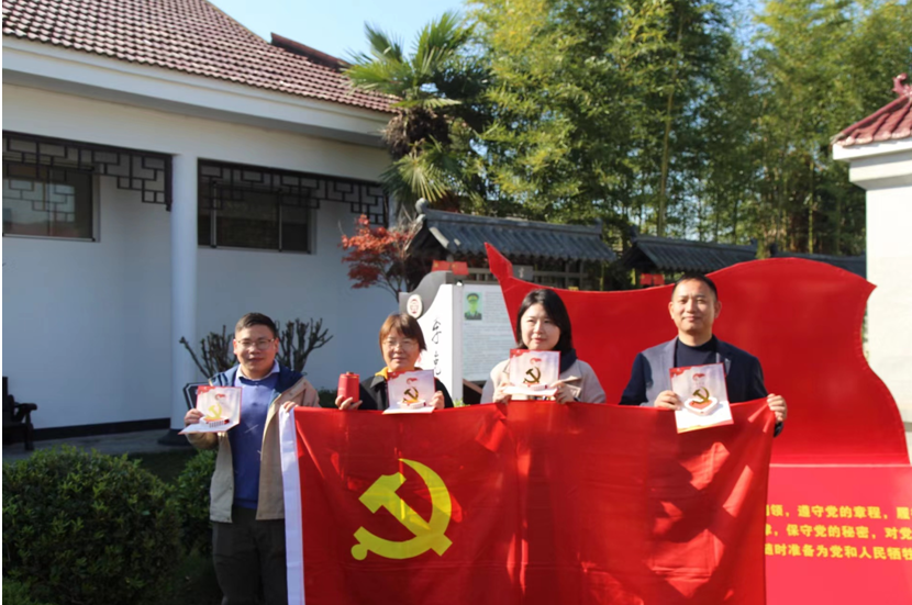 参观结束后,党员们来到李克农故居的庭院内重温入党誓词,为第四季度过“政治生日”的党员举办了一场别开生面的“生日会”。党员们右手握拳,高举过肩,誓言在鲜红的党旗前久久回荡,一字一句,铿锵有力;支部向党员赠送“政治生日”贺卡,通过生日寄语表达党组织对党员的关怀和祝愿,激励他们不忘入党初心、砥砺奋进前行。党员们许下“政治生日”愿望,分享参加“党员政治生日”活动的感受,讲述自己入党以来的追求、历程和表现,认真对照合格党员的标准进行自我剖析。