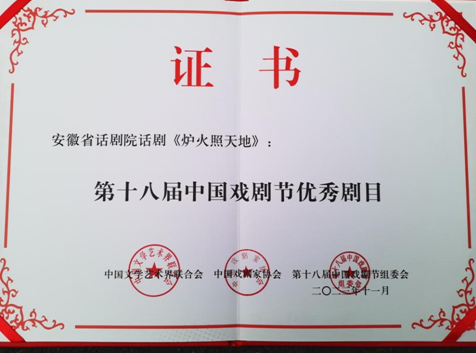 在演员、舞美、灯光、音乐的烘托下,现场观众很快沉浸其中,共同感受那段激情燃烧的岁月。两个小时的演出,大气磅礴、气势恢宏,高潮一波接着一波,掌声经久不息。当天的演出结束后,中国剧协副主席、宁夏回族自治区文化和旅游厅一级巡视员、中国戏剧二度梅花奖获得者柳萍现场为安徽省话剧院、马鞍山市艺术剧院颁发了“第十八届中国戏剧节优秀剧目”参演证书和纪念牌。